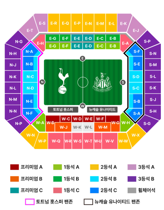 토트넘 vs 뉴캐슬 좌석 가격표