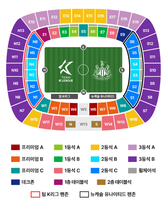 팀 K리그 vs 뉴캐슬 좌석 가격표