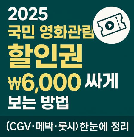 2025년 여름, 정부가 전 국민 영화 관람 할인 정책을 시작합니다. CGV, 메가박스, 롯데시네마 등 주요 영화관에서 1인당 최대 6천 원까지 할인받을 수 있어 실질적인 문화 혜택으로 평가되고 있습니다. 이번 글에서는 영화 할인권 신청 방법, 사용처, 유효기간, 주의사항까지 정리해드리겠습니다.